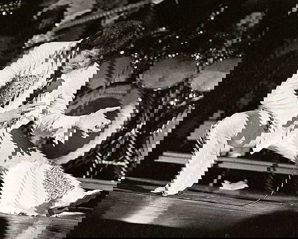 MILWAUKEE, WI – APRIL 1977: Elvis Presley performs in concert at the Milwaukee Arena on April 27, l977 in Milwaukee, Wisconsin. (Photo by Ronald C. Modra/ Getty Images)