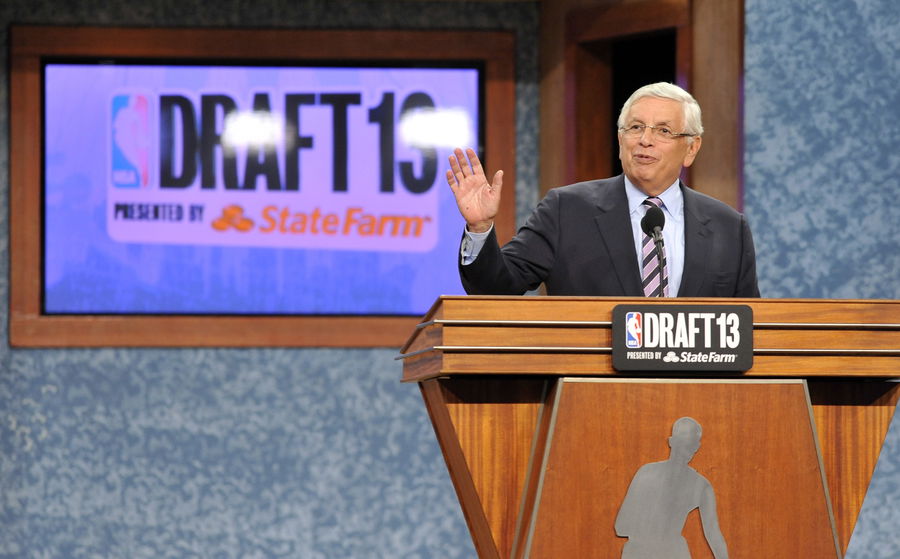 Jun 27, 2013; Brooklyn, NY, USA; NBA commissioner David Stern speaks after the first round of the 2013 NBA Draft at the Barclays Center. Mandatory Credit: Joe Camporeale-USA TODAY Sports