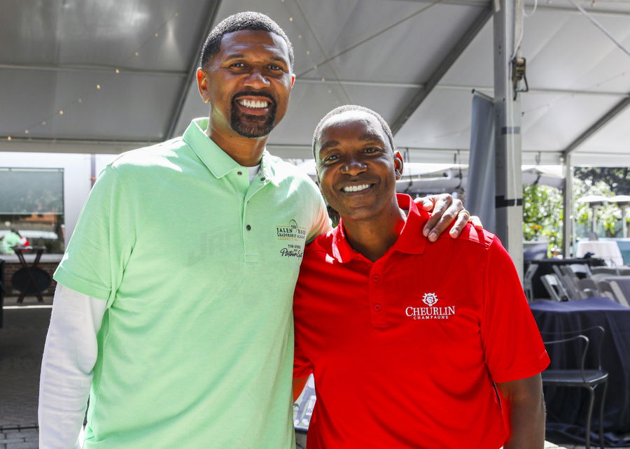 DETROIT, MICHIGAN – AUGUST 26: Former American professional basketball player, current sports analyst for ESPN, and cofounder of the Jalen Rose Leadership Academy, Jalen Rose (L) and 12x NBA All-Star, Named 50 Greatest Players in NBA History & Hall of Famer, Isiah Thomas pose at the Jalen Rose Leadership Academy Golf Tournament presented by Tom Gores & Platinum Equity held at Detroit Golf Club at Detroit Golf Club on August 26, 2019 in Detroit, Michigan. (Photo by Scott Legato/Getty Images for Jalen Rose Leadership Academy Golf Classic produced by PGD Global )