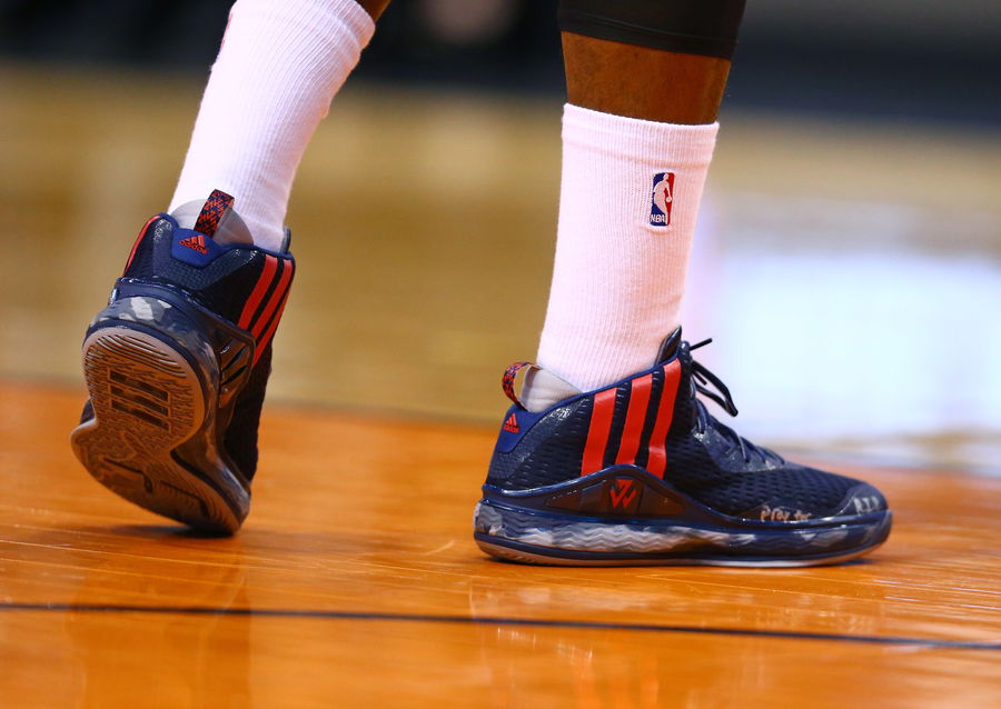 Jan 28, 2015; Phoenix, AZ, USA; Detailed view of the Adidas shoes of Washington Wizards guard John Wall (2) against the Phoenix Suns at US Airways Center. The Suns defeated the Wizards 106-98. Mandatory Credit: Mark J. Rebilas-USA TODAY Sports