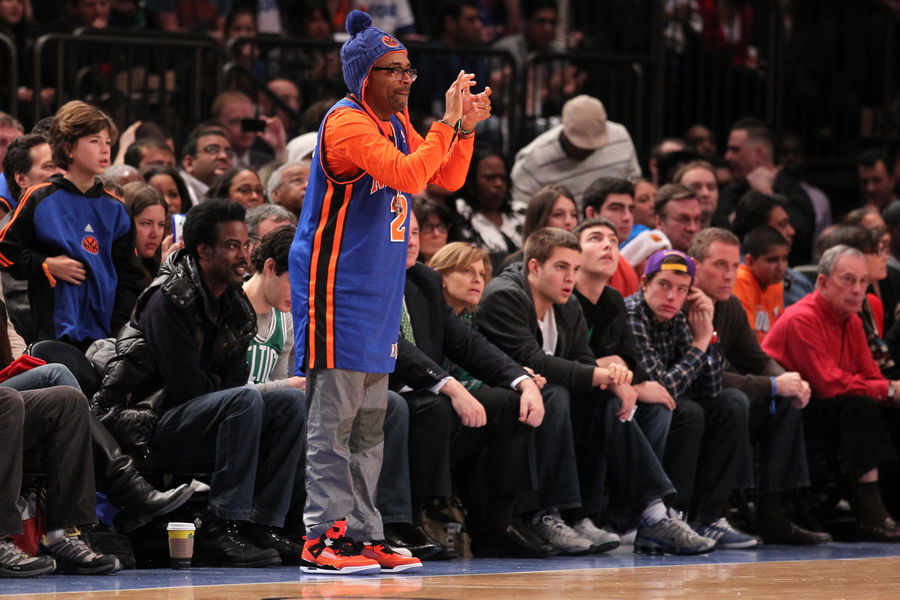 Dec 25, 2011; New York, NY, USA; American director Spike Lee reacts during the second quarter between the New York Knicks and the Boston Celtics at Madison Square Garden. Mandatory Credit: Anthony Gruppuso-USA TODAY Sports