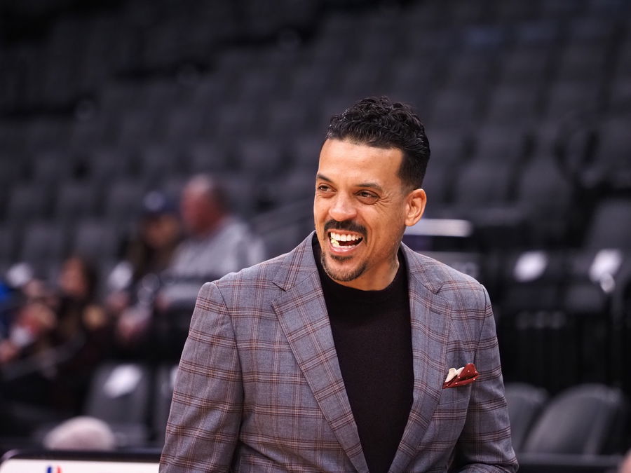Mar 7, 2022; Sacramento, California, USA; Former NBA player Matt Barnes smiles on the court before the game between the Sacramento Kings and New York Knicks at Golden 1 Center. Mandatory Credit: Kelley L Cox-USA TODAY Sports