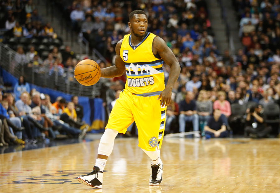 Jan 3, 2015; Denver, CO, USA; Denver Nuggets guard Nate Robinson (5) during the game against the Memphis Grizzlies at Pepsi Center. Mandatory Credit: Chris Humphreys-USA TODAY Sports.