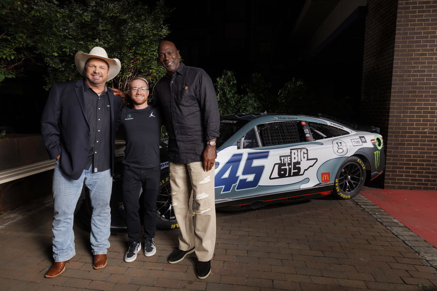 NASHVILLE, TENNESSEE – JUNE 23: (L-R) Tyler Reddick, driver of the #45 The Big 615/MoneyLion Toyota, Garth Brooks and Michael Jordan at The Electric Jane on June 23, 2023 in Nashville, Tennessee. (Photo by Brett Carlsen/Getty Images for 23XI Racing)