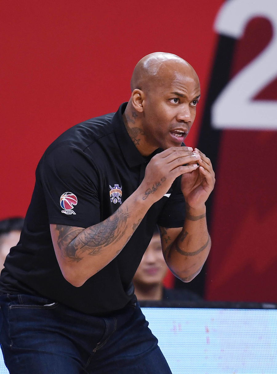 210411 — ZHUJI, April 11, 2021 — Head coach of Beijing Royal Fighters Stephon Marbury instructs during the 55th round match between Liaoning Flying Leopards and Beijing Royal Fighters at the 2020-2021 season of the Chinese Basketball Association CBA league in Zhuji, east China s Zhejiang Province, April 11, 2021. SPCHINA-ZHUJI-BASKETBALL-CBA LEAGUE-LIAONING VS BEIJING CN LixZiheng PUBLICATIONxNOTxINxCHN