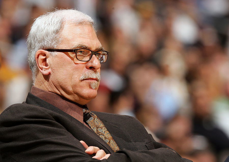 LOS ANGELES – FEBRUARY 13: Head coach Phil Jackson of the Los Angeles Lakers sits on the bench and watches the game against the Utah Jazz on February 13, 2006 at Staples Center in Los Angeles, California. NOTE TO USER: User expressly acknowledges and agrees that, by downloading and or using this photograph, User is consenting to the terms and conditions of the Getty Images License Agreement. (Photo by Lisa Blumenfeld/Getty Images)