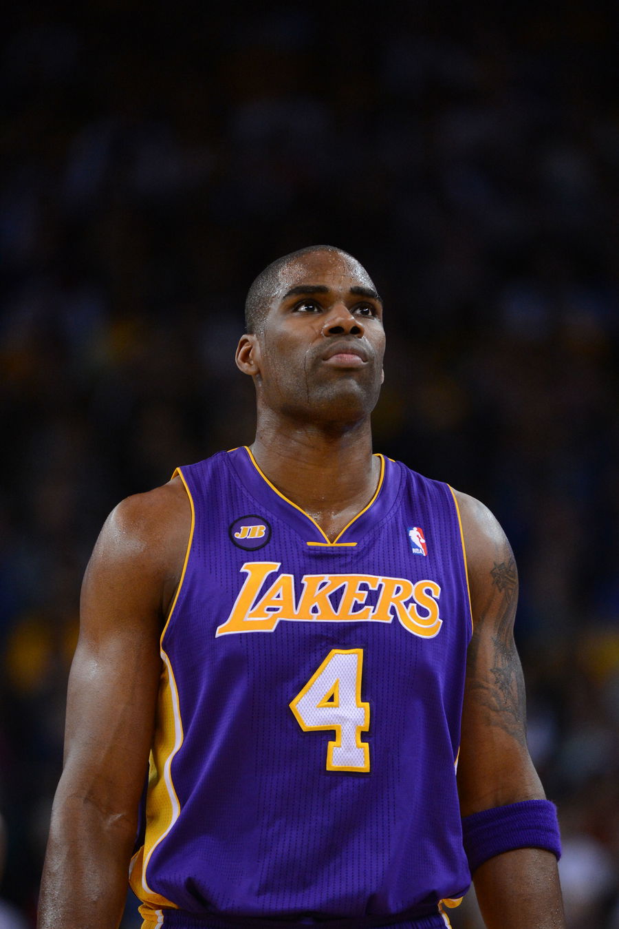 March 25, 2013; Oakland, CA, USA; Los Angeles Lakers power forward Antawn Jamison (4) looks on during the third quarter against the Golden State Warriors at Oracle Arena. The Warriors defeated the Lakers 109-103. Mandatory Credit: Kyle Terada-USA TODAY Sports
