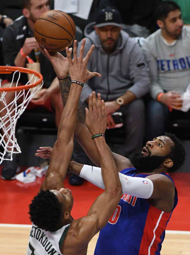 In the second quarter, Antetokounmpo raced to the basket, preparing himself for a huge dunk over the Pistons’ Andre Drummond.