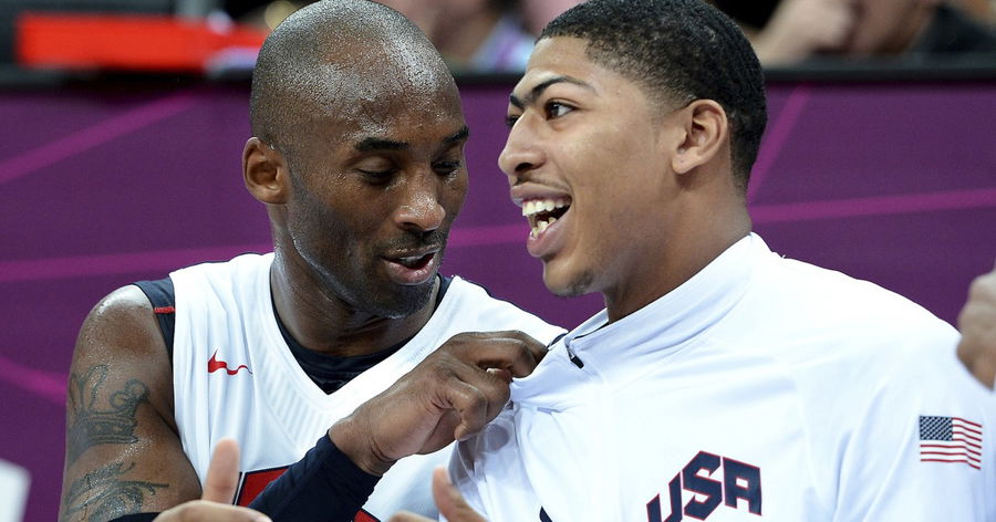 “I met him before at a camp. The first time I got to talk to him and get to know him was on the Olympic team. Everyone knows me and Kobe were close. He was my god, and it’s a picture that floats around with me and him on the bench at one of the games. He’s looking down my shirt. It’s because I forgot my jersey to go into the game.”