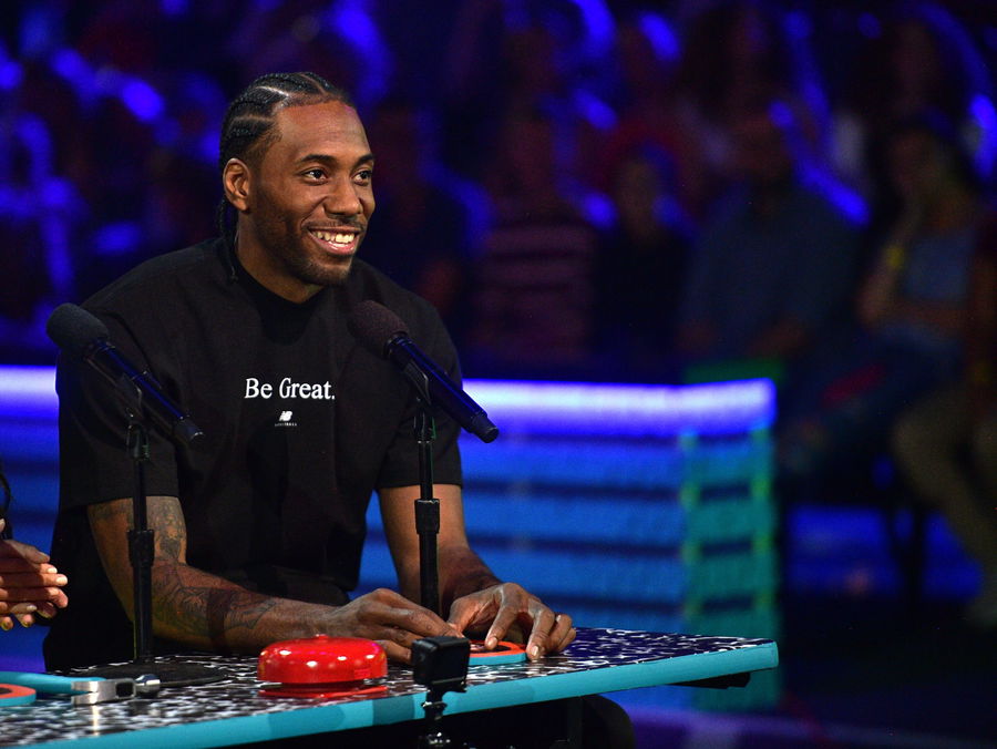 SANTA MONICA, CALIFORNIA – JULY 11: Kawhi Leonar speaks onstage during Nickelodeon Kids’ Choice Sports 2019 at Barker Hangar on July 11, 2019 in Santa Monica, California. (Photo by Matt Winkelmeyer/KCASports2019/Getty Images for Nickelodeon)