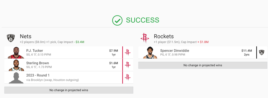 Although he holds much value otherwise, Spencer Dinwiddie is currently injured and won’t return before next season. The Nets need win-now players and Dinwiddie cannot do that.