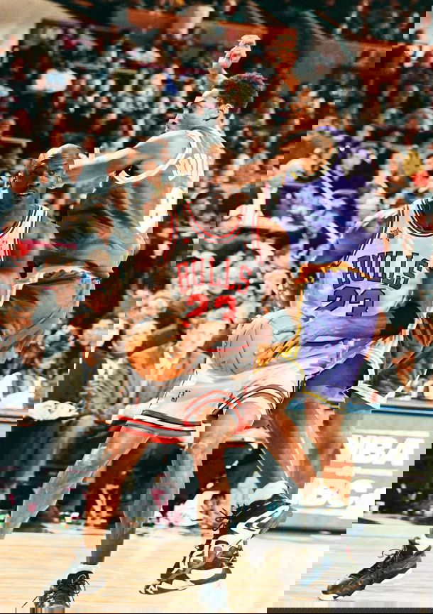Jordan was at his peak at the time, scoring 30 points during the night in question. He won his fifth NBA championship that season.
