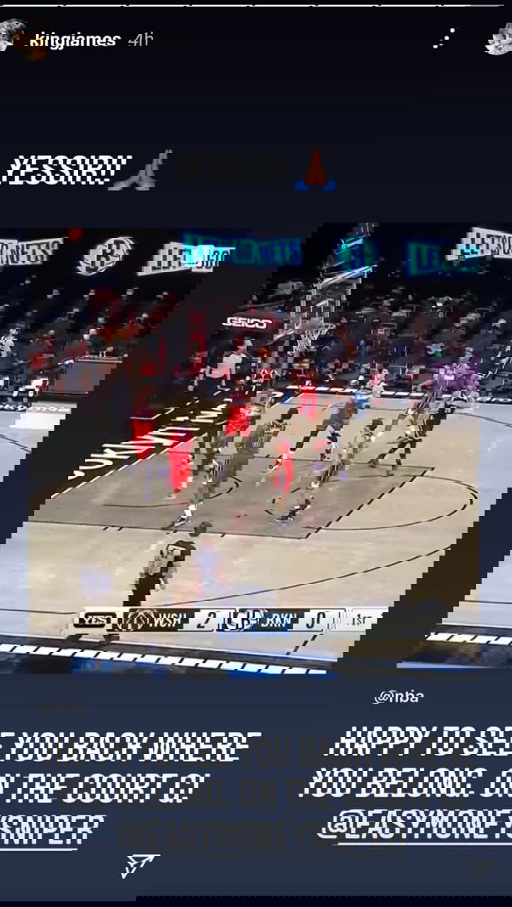 Lakers‘ legend LeBron James posted a welcome back message for Durant on his Instagram story. He wrote, “Happy to see you back where you belong. On the court G!”