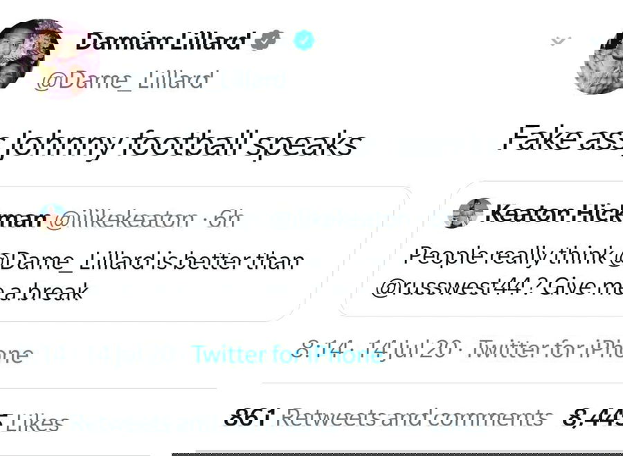 The Russell Westbrook vs Damian Lillard is one of the biggest on-court rivalries in the NBA right now. Both are elite All-NBA level point guards who have had multiple on-court encounters and it has gone both ways. After a long NBA hiatus, this feud has now resumed after Lillard lashed out on Twitter at someone who said Westbrook is a better player. The original tweet by Keaton Hickman has now been deleted.16