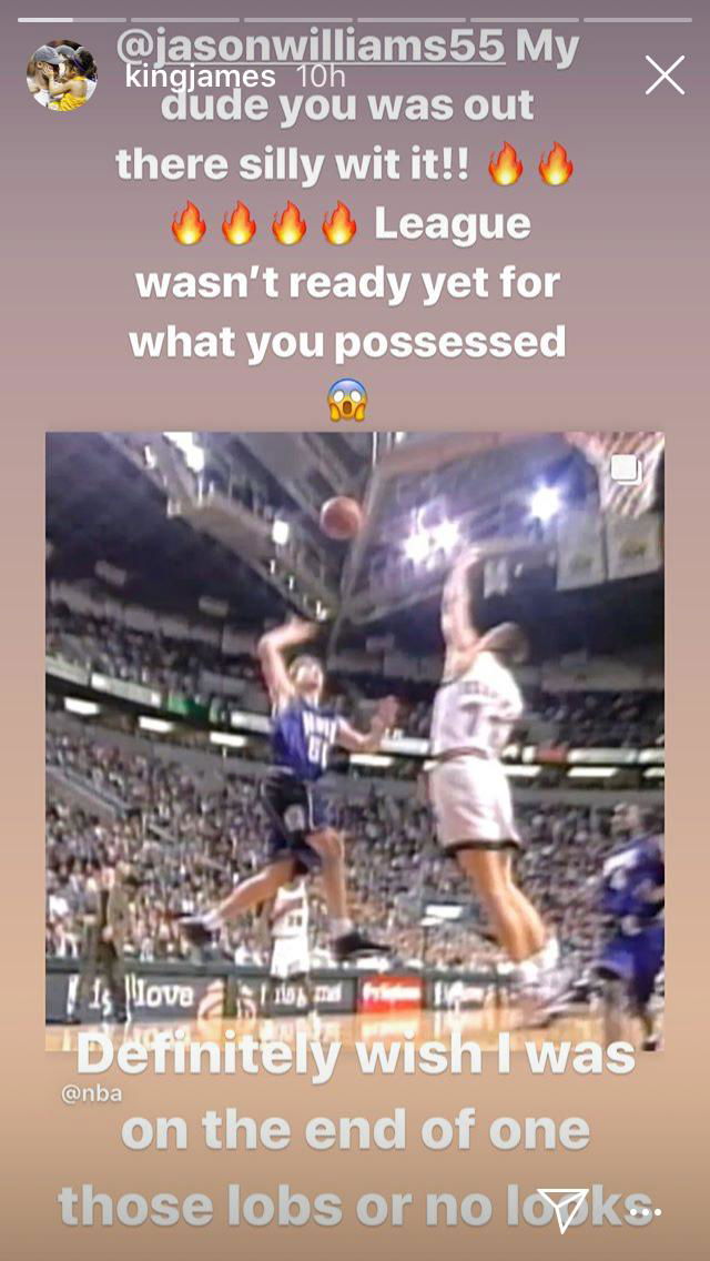 James, one of the best players of this generation, had a few words to say about his former opponent, Jason Williams. The King shared the NBA’s post to his Instagram story and voiced his thoughts about ‘White Chocolate’.