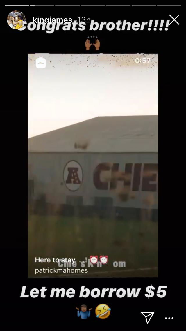 LeBron “King” James got into the scene as well. The Lakers superstar congratulated his “brother” on his Instagram story and further joked around by writing “Let me borrow $5,” with a shrug of the shoulder emoji.