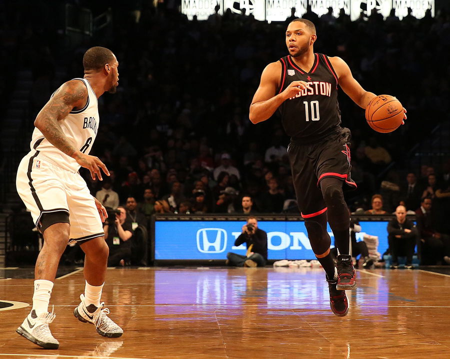 NEW YORK, UNITED STATES – JANUARY 15 : Sean Kilpatrick (L) of Brooklyn Nets in action against Eric Gordon (R) of Houston Rockets during NBA game between Brooklyn Nets and Houston Rockets at Barclays Center in Brooklyn, New York, U.S.A on January 15, 2017. (Photo by Mohammed Elshamy/Anadolu Agency/Getty Images)