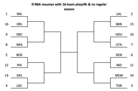 This would provide interesting matchups like Heat (8) vs. Thunder (9) and Lakers (2) vs. Nets (15). But we’d also have Celtics (5) facing the Sixers (6) which would be the biggest first-round tie. The Lakers could take on the Clippers in the NBA Finals potentially, giving LeBron James the chance for vengeance against Kawhi Leonard who stopped him from getting the three-peat in 2014.