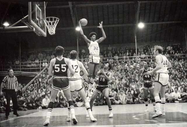 “So I held the ball out of the traffic while I looked [in midair.] Then I saw a chance to reach in. Kareem wasn’t jumping. I put it on the board. It just went in.”