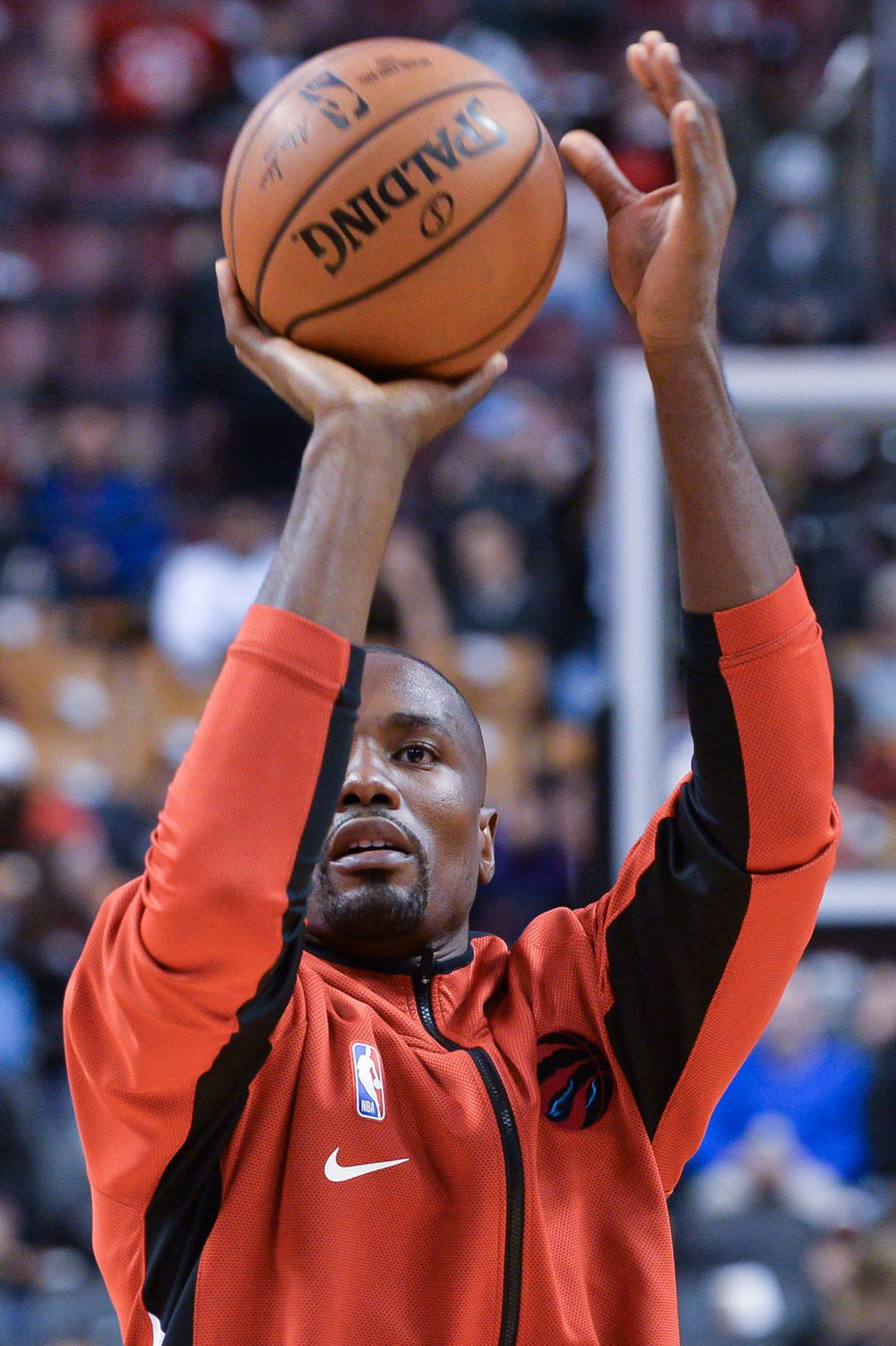TORONTO, ON – MARCH 1 – Serge Ibaka (9) of the Toronto Raptors after hitting a 3 point shot during the 2nd half of NBA action as the Washington Wizards defeat the Toronto Raptors 105-96 at the Air Canada Centre on March 1, 2017. (Carlos Osorio/Toronto Star via Getty Images)