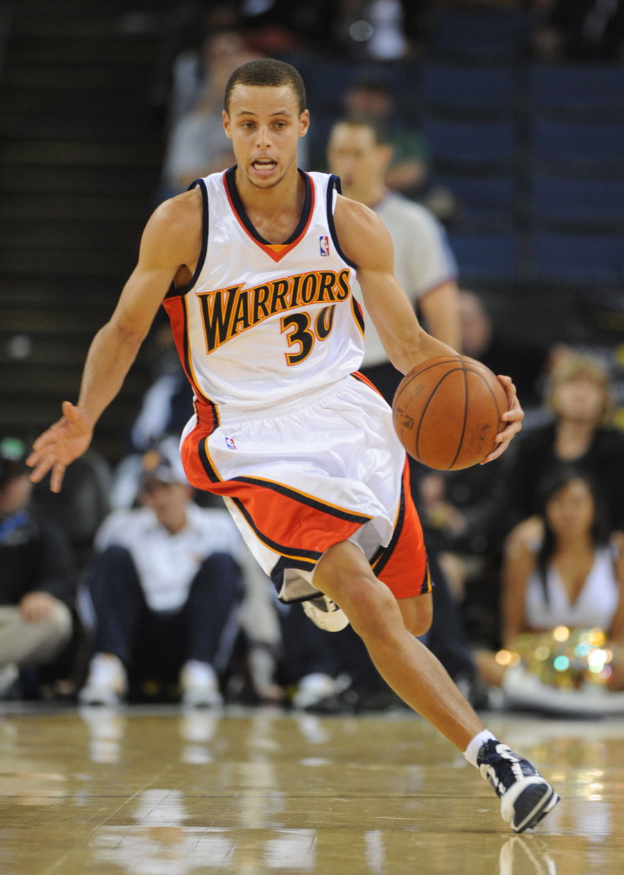 Golden State Warriors’ Stephen Curry (30) runs down court during their preseason game against the New Orleans Hornets on Thursday, Oct. 22, 2009 at Oracle Arena in Oakland, Calif. Warriors defeat the Hornets 126-92. (Jose Carlos Fajardo/Bay Area News Group) (Photo by MediaNews Group/Bay Area News via Getty Images)