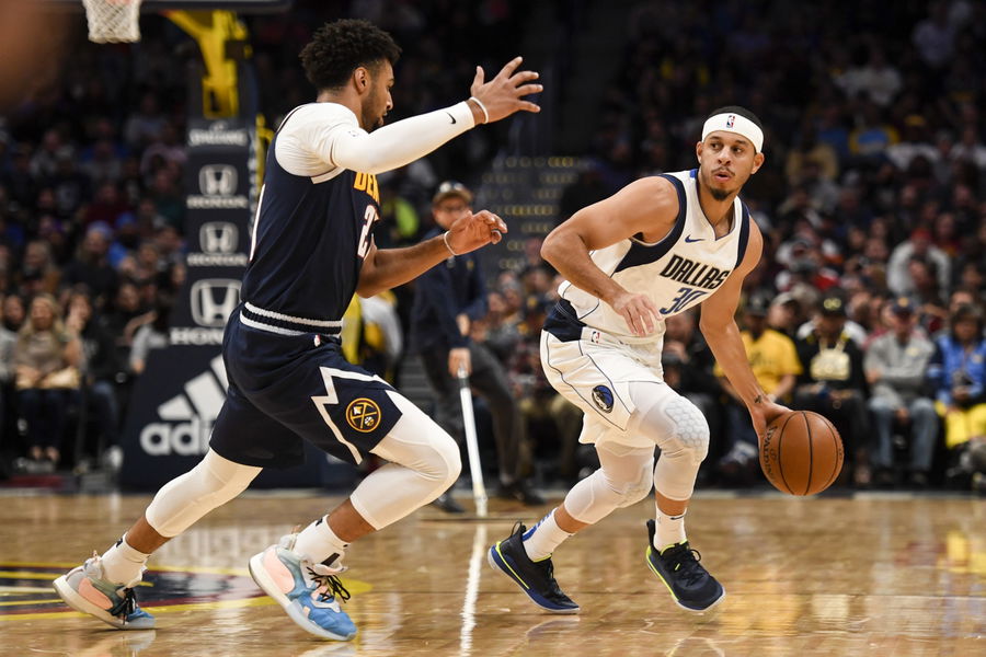 DENVER, CO – OCTOBER 29: Jamal Murray (27) of the Denver Nuggets defends Seth Curry (30) of the Dallas Mavericks during the second quarter on Tuesday, October 29, 2019. (Photo by AAron Ontiveroz/MediaNews Group/The Denver Post via Getty Images)