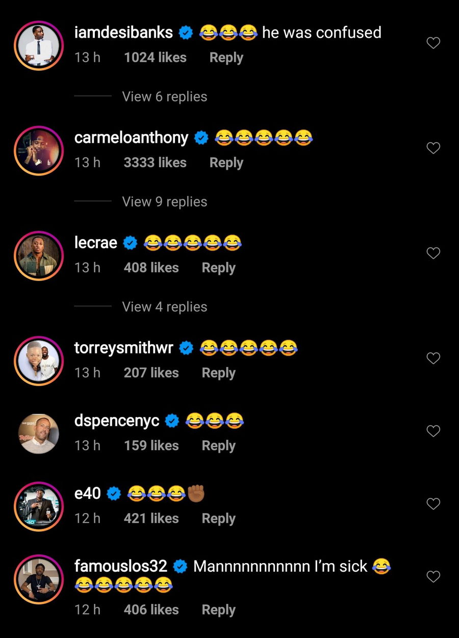 NBA analyst and former MVP Shaquille O’Neal commented “u alright cuz”. Teammate Eric Paschall laughed and said, “you was rocked”. The responses were pouring in, with veteran Carmelo Anthony, arch-rival LeBron James, and others also joining in. Former Dunk Contest Champion Nate Robinson commented ‘lol’.
