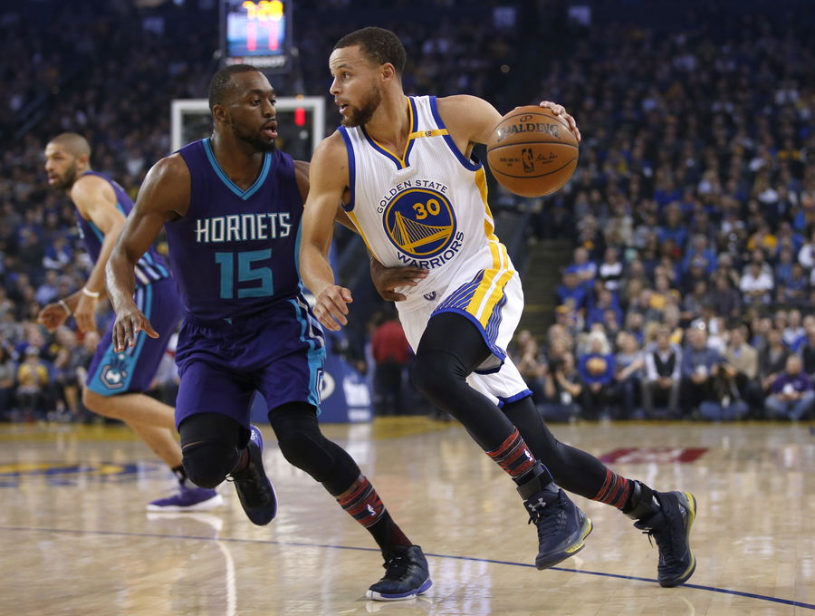 Golden State Warriors’ Stephen Curry (30) dribbles against Charlotte Hornets’ Kemba Walker (15) in the first quarter at Oracle Arena in Oakland, Calif. on Wednesday, Feb. 1, 2017. (Nhat V. Meyer/Bay Area News Group) (Photo by MediaNews Group/Bay Area News via Getty Images)