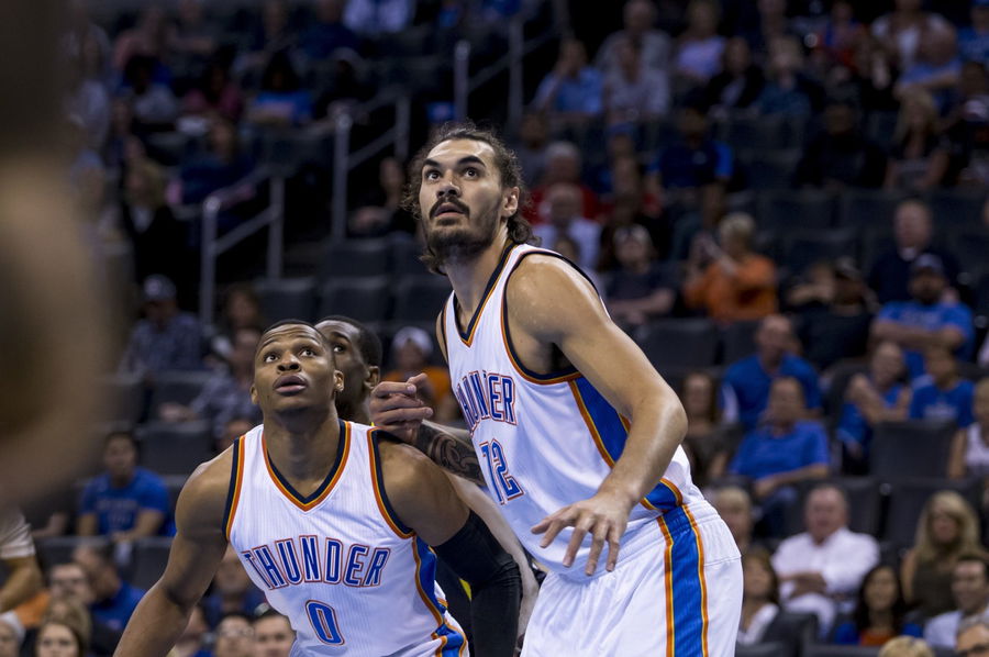 OKLAHOMA CITY, USA – OCTOBER 9: Steven Adams #12 of the Oklahoma City Thunder in action during the fourth quarter of a NBA preseason game at the Chesapeake Energy Arena on October 9, 2015 in Oklahoma City, Oklahoma. (Photo by Bilgin S. Sasmaz/Anadolu Agency/Getty Images)