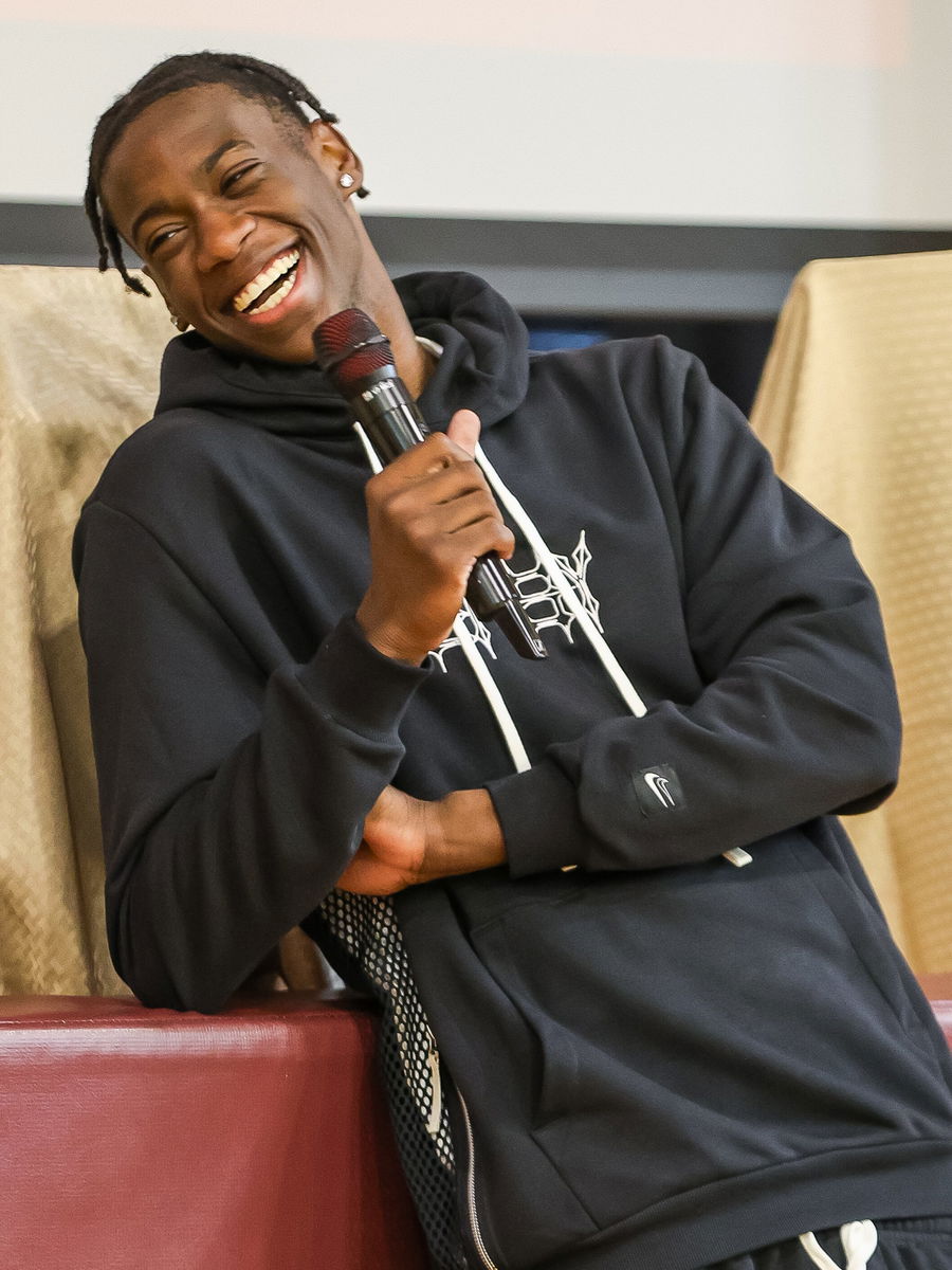 Brockton’s AJ Dybantsa, the nation’s top-ranked basketball recruit in the 2025 class, donated Nike gear to students at Trinity Catholic Academy in Brockton on Wednesday, June 5, 2024.