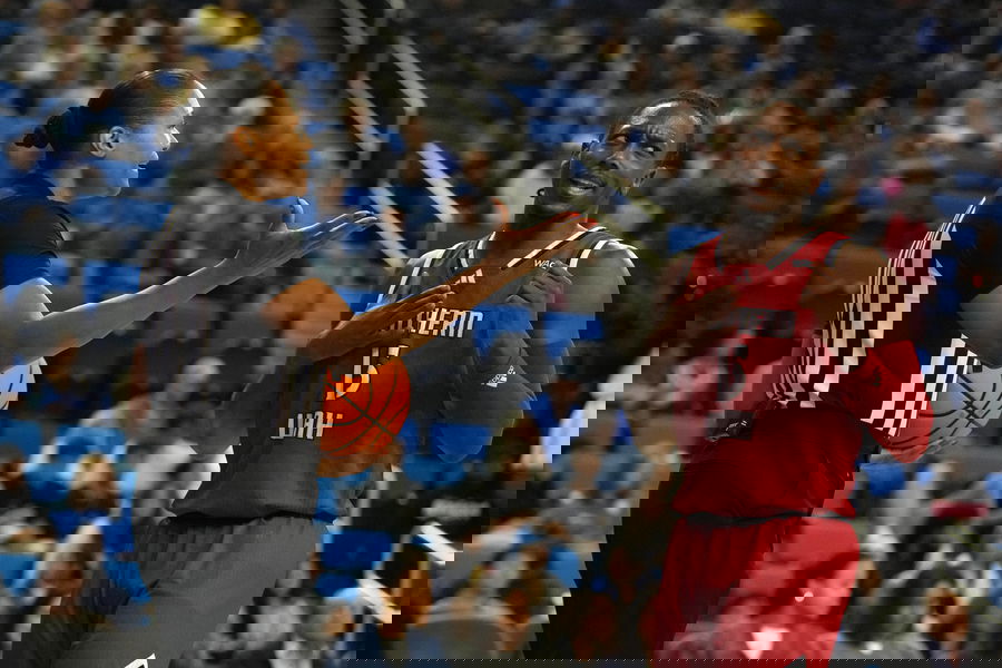 NCAA, College League, USA Basketball: Southern Utah at UCLA Nov 26, 2024 Los Angeles, California, USA NCAA referee Deidre Carr interacts with Southern Utah Thunderbirds guard Hercy Miller 15 in the second half against the UCLA Bruins at Pauley Pavilion presented by Wescom. Los Angeles Pauley Pavilion presented by Wescom California USA, EDITORIAL USE ONLY PUBLICATIONxINxGERxSUIxAUTxONLY Copyright: xKirbyxLeex 20241126_jhp_al2_0243