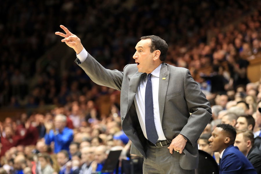 DURHAM, NORTH CAROLINA – FEBRUARY 10: Head coach Mike Krzyzewski of the Duke Blue Devils reacts against the Florida State Seminoles during their game at Cameron Indoor Stadium on February 10, 2020 in Durham, North Carolina. (Photo by Streeter Lecka/Getty Images)