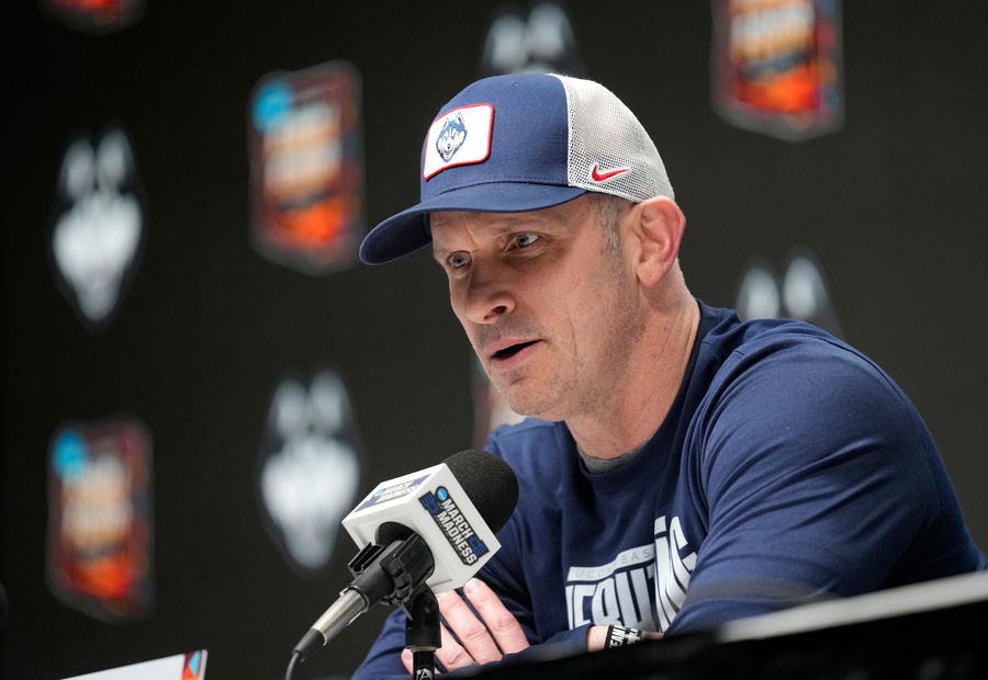 Connecticut Huskies head coach Dan Hurley speaks at a press conference during practice before the 2024 Final Four of the NCAA Tournament at State Farm Stadium on Friday, April 5, 2024.