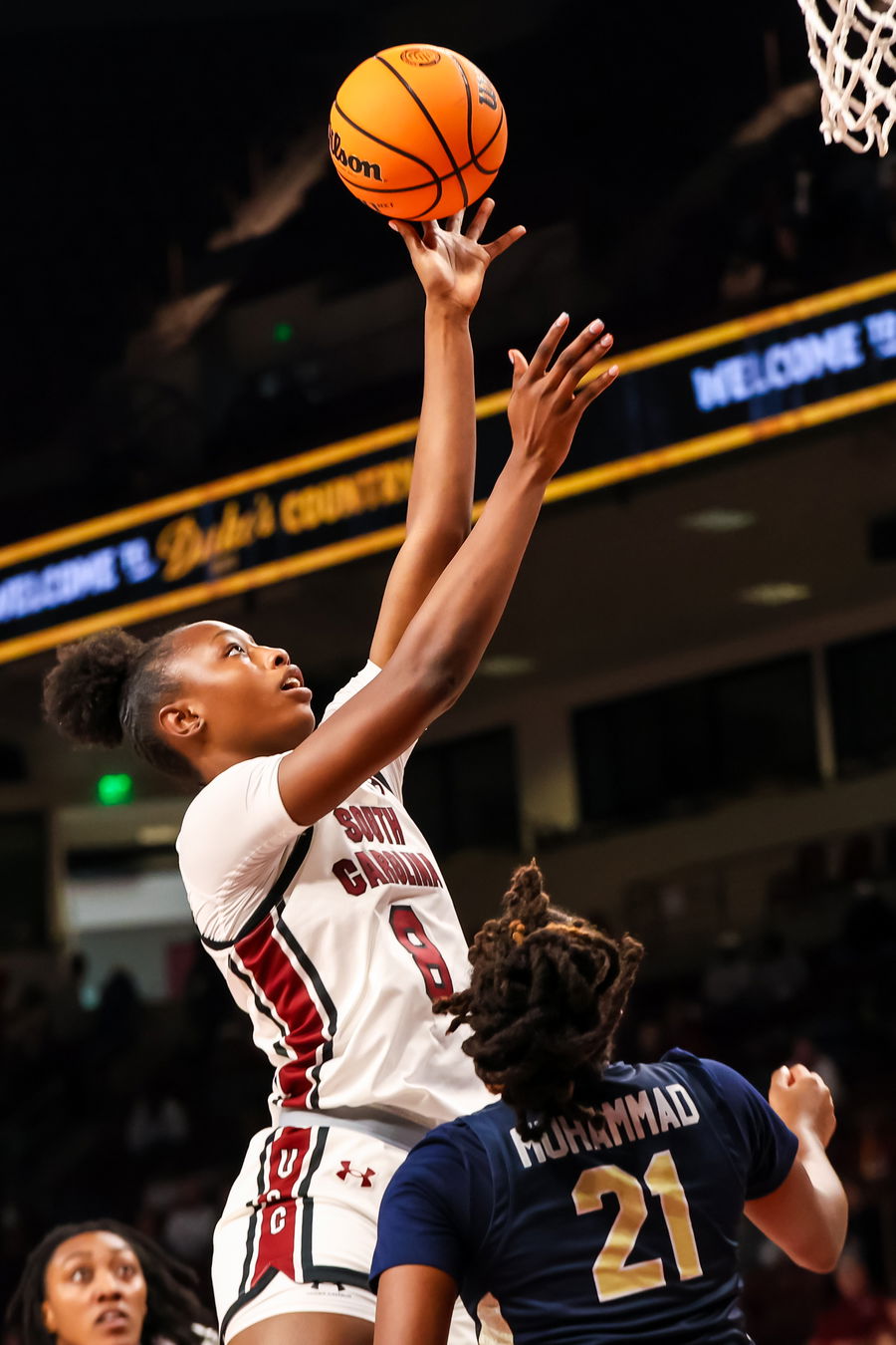 And speaking of Okot, the Gamecocks saw three players finish with double-digit points, including a dominant double-double from transfer Okot (17 points, 15 rebounds). Yet coach Staley still said, “Really just scratching the surface when it comes to the things that she could do out there.”
