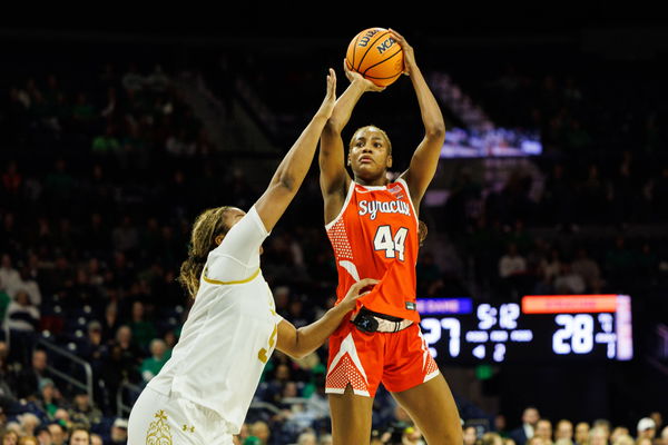 NCAA, College League, USA Womens Basketball 2026: Syracuse Vs Notre Dame FEB 26 February 26, 2026: Syracuse center Uche Izoje 44 shoots the ball as Notre Dame forward Malaya Cowles 5 defends during NCAA Women s Basketball game action between the Syracuse Orange and the Notre Dame Fighting Irish at Purcell Pavilion at the Joyce Center in South Bend, Indiana. John Mersits/CSM. Credit Image: John Mersits/Cal Media South Bend Indiana United States of America EDITORIAL USE ONLY Copyright: xx ZUMA-20260226_zma_c04_170.jpg JohnxMersitsx csmphotothree475915