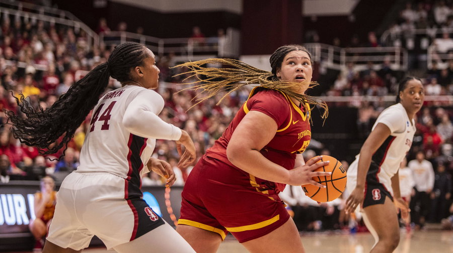 NCAA, College League, USA 2024 Womens Basketball Second Round Game: Iowa State vs Stanford MAR 24 Mar 24, 2024 Palo Alto, CA, U.S.A. Iowa State center Audi Crooks 55shoots the ball over Stanford forward Kiki Iriafen 44during the NCAA Women s Basketball Second Round game between the Iowa State Cyclones and the Stanford Cardinal. Stanford beat Iowa State in overtime 87-81 at Maple Pavilion Palo Alto,.CA. Thurman James / CSM Credit Image: Thurman James/Cal Media Palo Alto Ca USA EDITORIAL USE ONLY Copyright: xx ZUMA-20240324_zma_c04_213.jpg ThurmanxJamesx csmphotothree245743