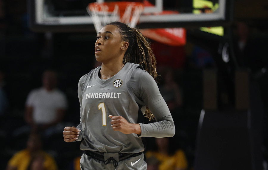 NASHVILLE, TN – FEBRUARY 02: Vanderbilt Commodores guard Mikayla Blakes 1 during a game between the Vanderbilt Commodores and Ole Miss Rebels, February 2, 2025 at Memorial Gymnasium in Nashville, Tennessee. Photo by Matthew Maxey/Icon Sportswire COLLEGE BASKETBALL: FEB 02 Women s – Ole Miss at Vanderbilt EDITORIAL USE ONLY Icon25020237