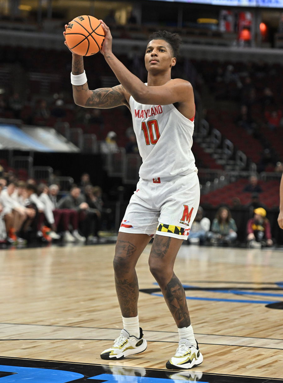 March 09, 2023: Maryland Terrapins forward Julian Reese 10 shooting a free throw in the 2nd half during the second round of the NCAA, College League, USA Big Ten Conference Men s Basketball Tournament game at United Center in Chicago, Illinois. /CSM. Chicago USA – ZUMAc04_ 20230309_zaf_c04_245 Copyright: xDeanxReidx