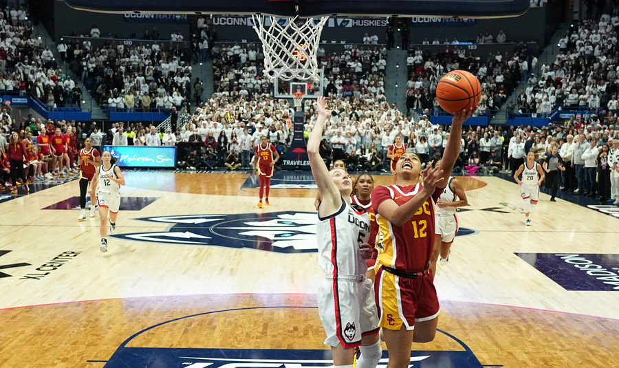 By halftime, the Trojans led 42-29. They stormed out of the gate with a 24-15 first quarter and kept the pressure on in the second, outscoring UConn 18-14. The Huskies and Bueckers, meanwhile, were still searching for their spark. But the USC’s star guard was on fire.