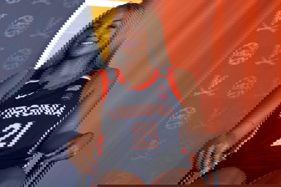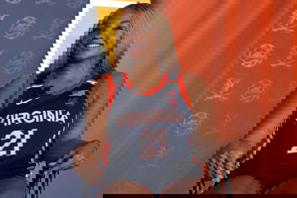 Oct 9, 2024; Charlotte, NC, USA; Virginia player Kymora Johnson during ACC Media Days at The Hilton Charlotte Uptown. Mandatory Credit: Jim Dedmon-Imagn Images