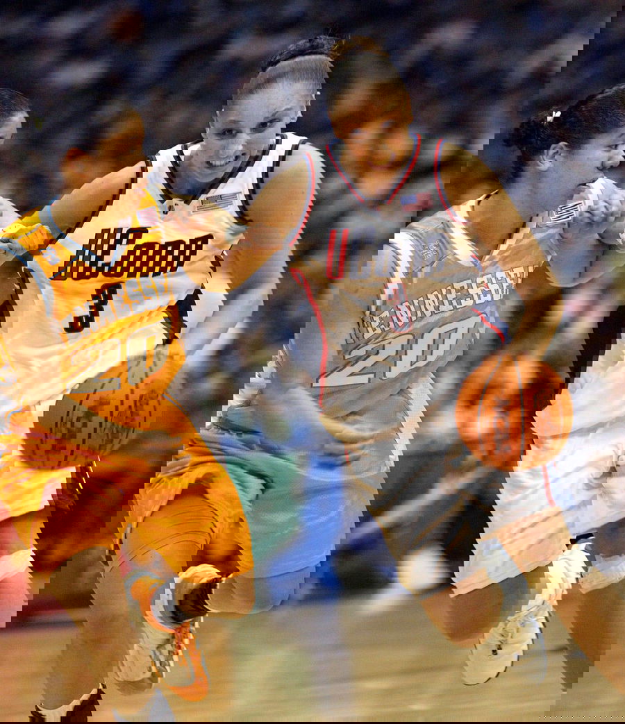 Syndication: USA TODAY Connecticut s Diana Taurasi battles past Tennessee s Kara Lawson as the Connecticut Huskies defeated Tennessee 79-56 during the NCAA, College League, USA women s semi-finals at the Alamodome in San Antonio, Texas on March 29, 2002. McLean , EDITORIAL USE ONLY PUBLICATIONxINxGERxSUIxAUTxONLY Copyright: xJACKxGRUBERx USATSI_25509565