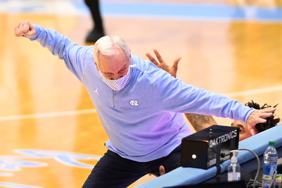 Mar 6, 2021; Chapel Hill, North Carolina, USA; North Carolina Tar Heels head coach Roy Williams reacts in the second half at Dean E. Smith Center. Mandatory Credit: Bob Donnan-USA TODAY Sports