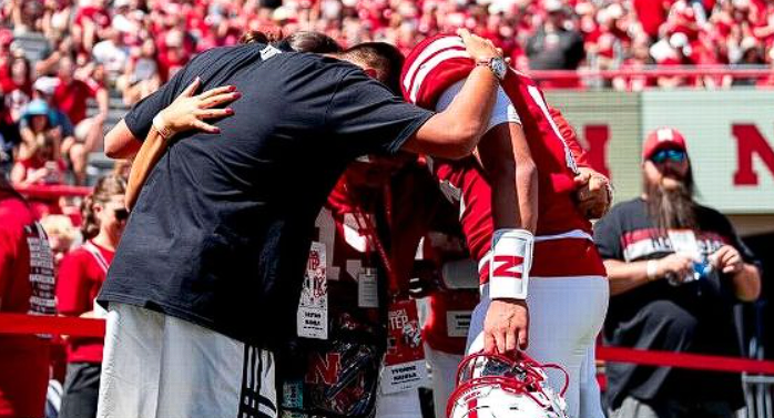 As you can see, Dylan is a natural-born talent on the field, he is humble and he has a strong family-oriented principle. The Raiola family is small but close, and it is no wonder they were praying ahead of the game on the sideline of the Memorial Stadium, before his debut. When he was in high school, Dylan’s mom maintained this tradition, and even today, when they are performing in a stadium full of 86 thousand fans – they do this.