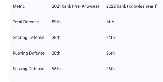 In recent discussions with Dan Wetzel, he reminded us that although Knowles has a track record, transitioning from one juggernaut to another isn’t always smooth sailing. “When it comes to Penn State, I was looking back a little bit yesterday and refreshing my memory on Jim Knowles’ first year in his system at Ohio State.” Rece Davis says on June 25th on the ESPN College Football channel. “Now, overall, they were good, but they gave up some big plays, and when they played elite offenses, it was even worse.” Ohio State’s defense improved from 59th in overall defense in 2021, giving up 372.6 yards per game, to 14th in 2022 at just 321.5 yards per game. That is a significant improvement.