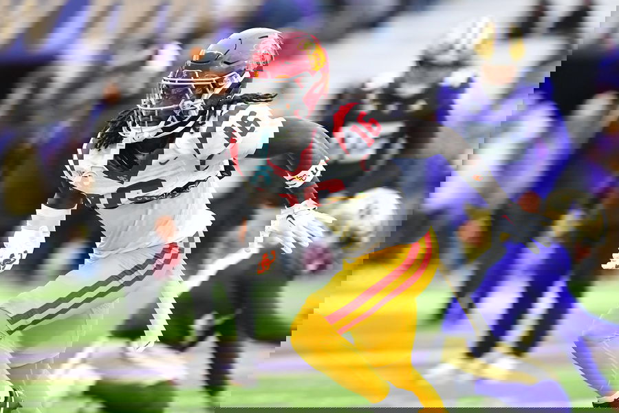 November 02, 2024: USC Trojans cornerback Prophet Brown 16 before the NCAA, College League, USA Football game between the USC Trojans and the Washington Huskies in Seattle, Washington. /CSM Seattle United States – ZUMAc04_ 20241102_zma_c04_049 Copyright: xStevexFaberx