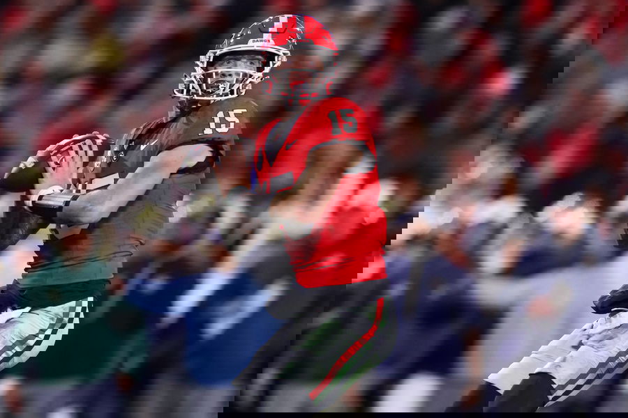NCAA, College League, USA Football: Georgia Tech at Georgia Nov 29, 2024 Athens, Georgia, USA Georgia Bulldogs quarterback Carson Beck 15 throws a pass against the Georgia Tech Yellow Jackets in the fourth quarter at Sanford Stadium. Athens Sanford Stadium Georgia USA, EDITORIAL USE ONLY PUBLICATIONxINxGERxSUIxAUTxONLY Copyright: xBrettxDavisx 20241130_bdd_ad1_081