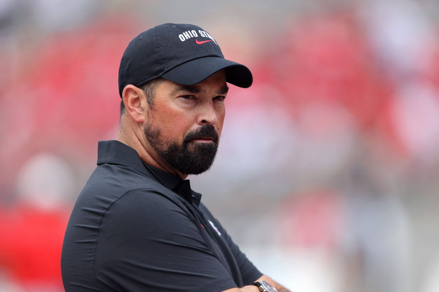 Aug 31, 2024; Columbus, Ohio, USA; Ohio State Buckeyes head coach Ryan Day looks on before a game against the Akron Zips at Ohio Stadium. Mandatory Credit: Joseph Maiorana-USA TODAY Sports