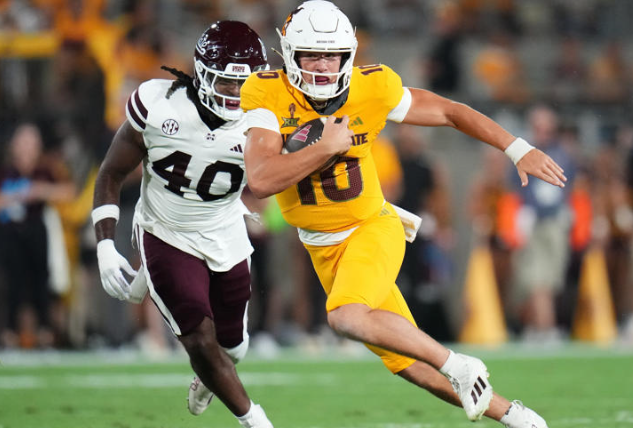 Quarterback Sam Leavitt is thriving as the leader of the Arizona State Sun Devils. Last week against Kansas Jayhawks, the standout QB scored a high-stake performance, leading the team to a spectacular 35-31 win. While receiver Jordyn Tyson has been by Leavitt’s side throughout the stellar week 6 game, Offensive co-ordinator Marcus Arroyo is who shaped the standout QB’s strategic rise to the helm of his craft.