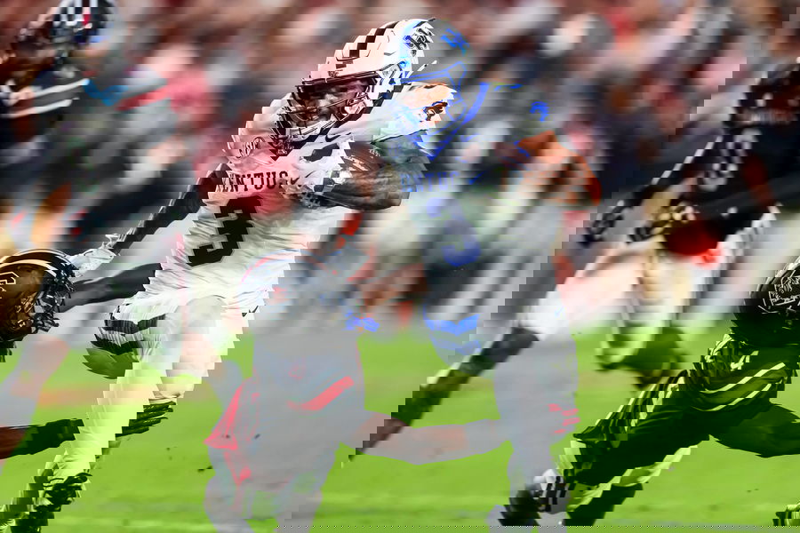 NCAA, College League, USA Football: Kentucky at South Carolina Sep 27, 2025 Columbia, South Carolina, USA Kentucky Wildcats running back Seth McGowan 3 gets past South Carolina Gamecocks defensive back Vicari Swain 4 on his way to a touchdown in the first quarter at Williams-Brice Stadium. Columbia Williams-Brice Stadium South Carolina USA, EDITORIAL USE ONLY PUBLICATIONxINxGERxSUIxAUTxONLY Copyright: xJeffxBlakex 20250927_tbs_ay3_098