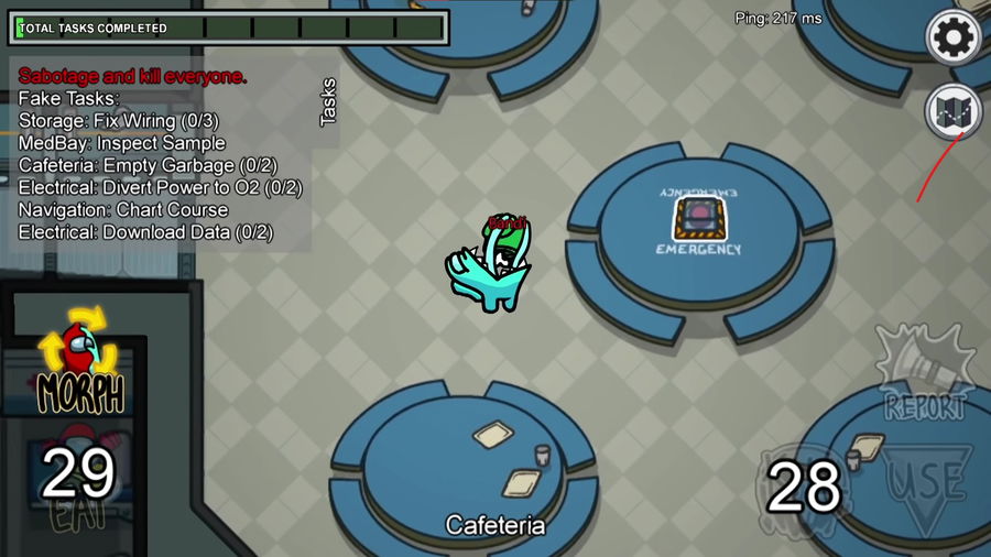 After the imposter kills a crewmate, they have to eat the dead body of the crewmate if they want to morph into them. In order to turn into the other player, imposters can use the morph button that changes their avatar into the eaten body. Imposters can multiple dead bodies and morph into these bodies as many times as they want.